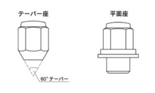 ●ホイールの形状(取付ナット座)に合ったナットを使用してください。[テーパー座] [平面座]などがあります。