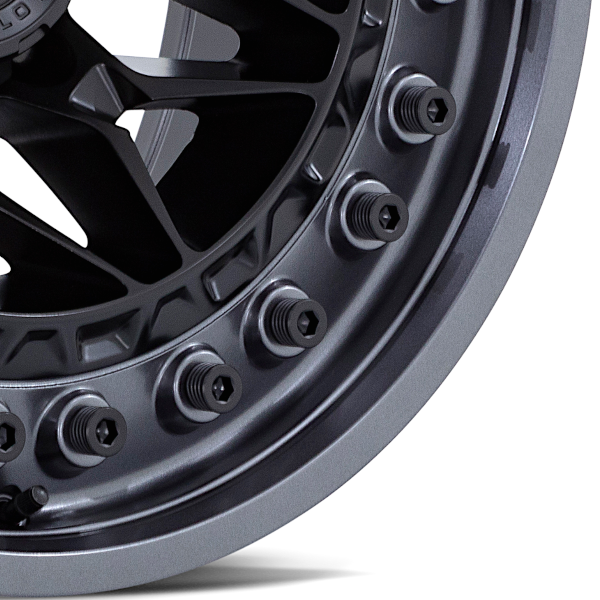 「マットブラック」カラーのクロススポークと「ガンメタ」カラーの強靭なビードリングが最高に格好良いオフロードホイール。