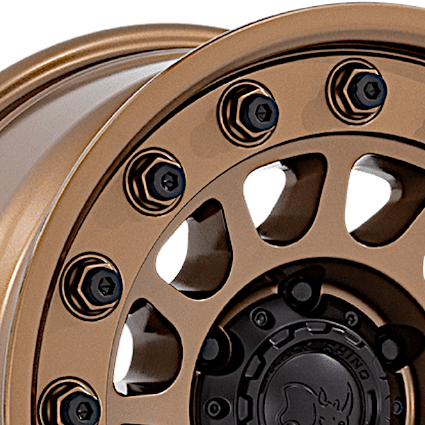装甲車のホイールのようなビッグボルト&ナットが特徴のSUV、ピックアップトラックにおすすめブロンズホイール。