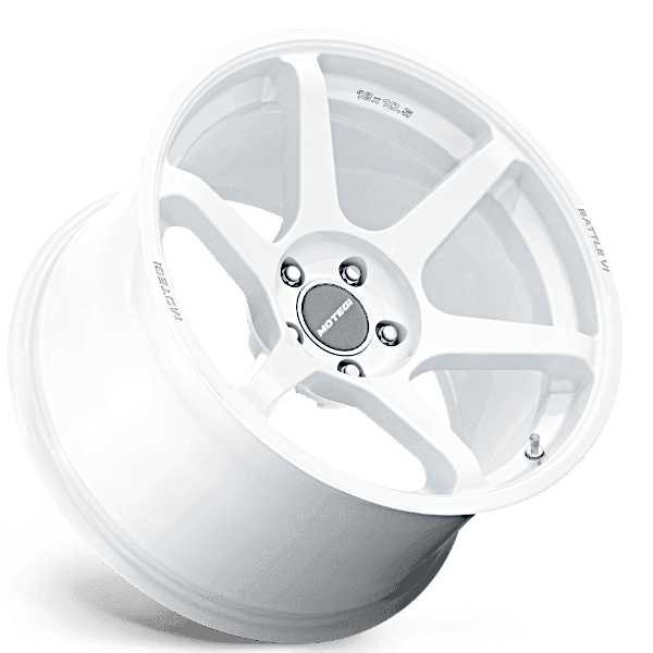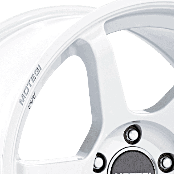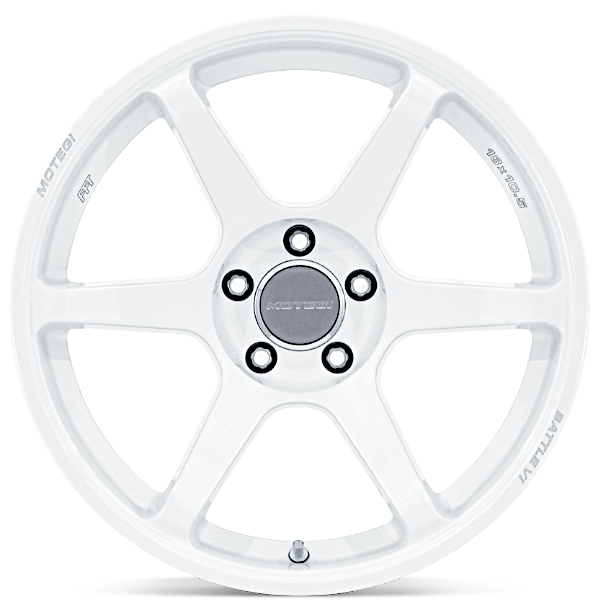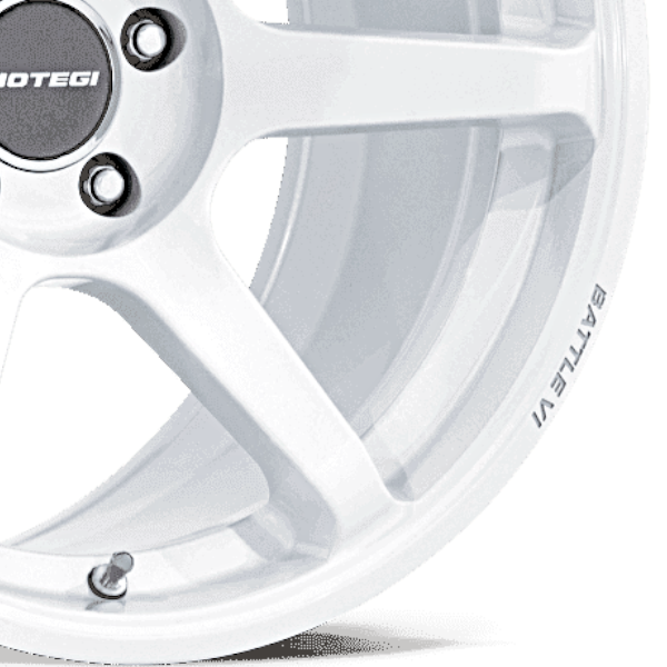 日本の祭をイメージしたカラー「MATSURI WHITE PEARL」とリムの「MOTEGI」「BATTLE Ⅵ」ロゴが印象的な6スポークアルミホイール。