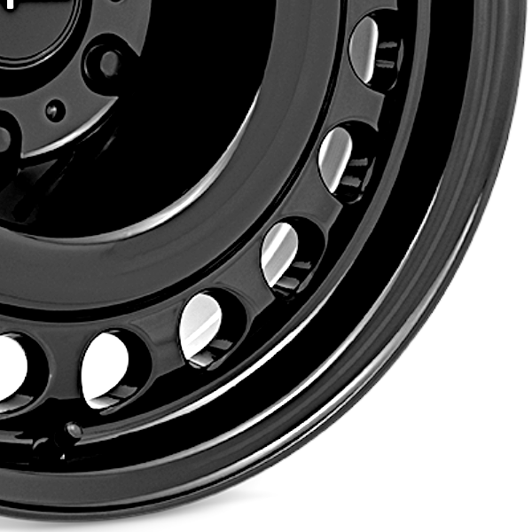 スチールホイールを彷彿させる20ホールデザインが特徴のブラックアルミホイール。