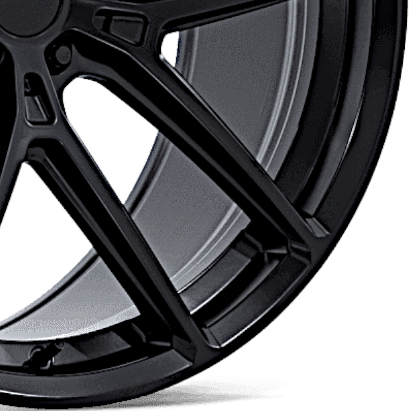 大胆なスプリット5スポークデザインと深いコンケーブプロファイルが際立ち、力強く路面にしっかりと接地する印象を与えます。