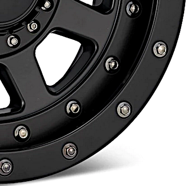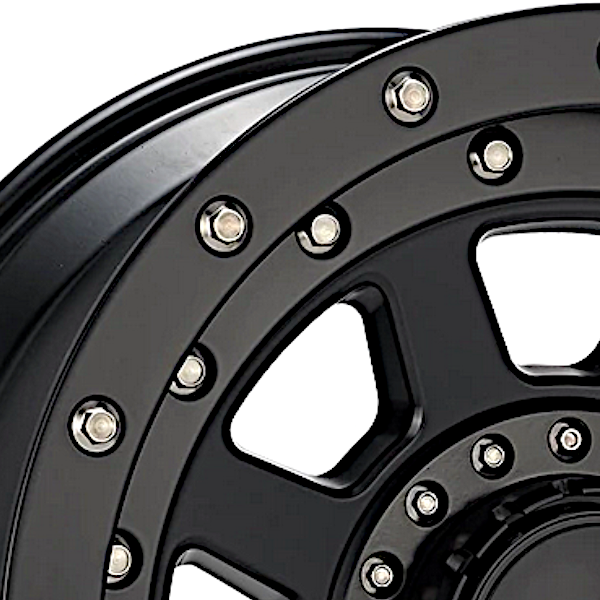 FMJ(フルメタルジャケット/完全被甲弾)の名前の通り、強靭イメージのオフロードブラックホイール。